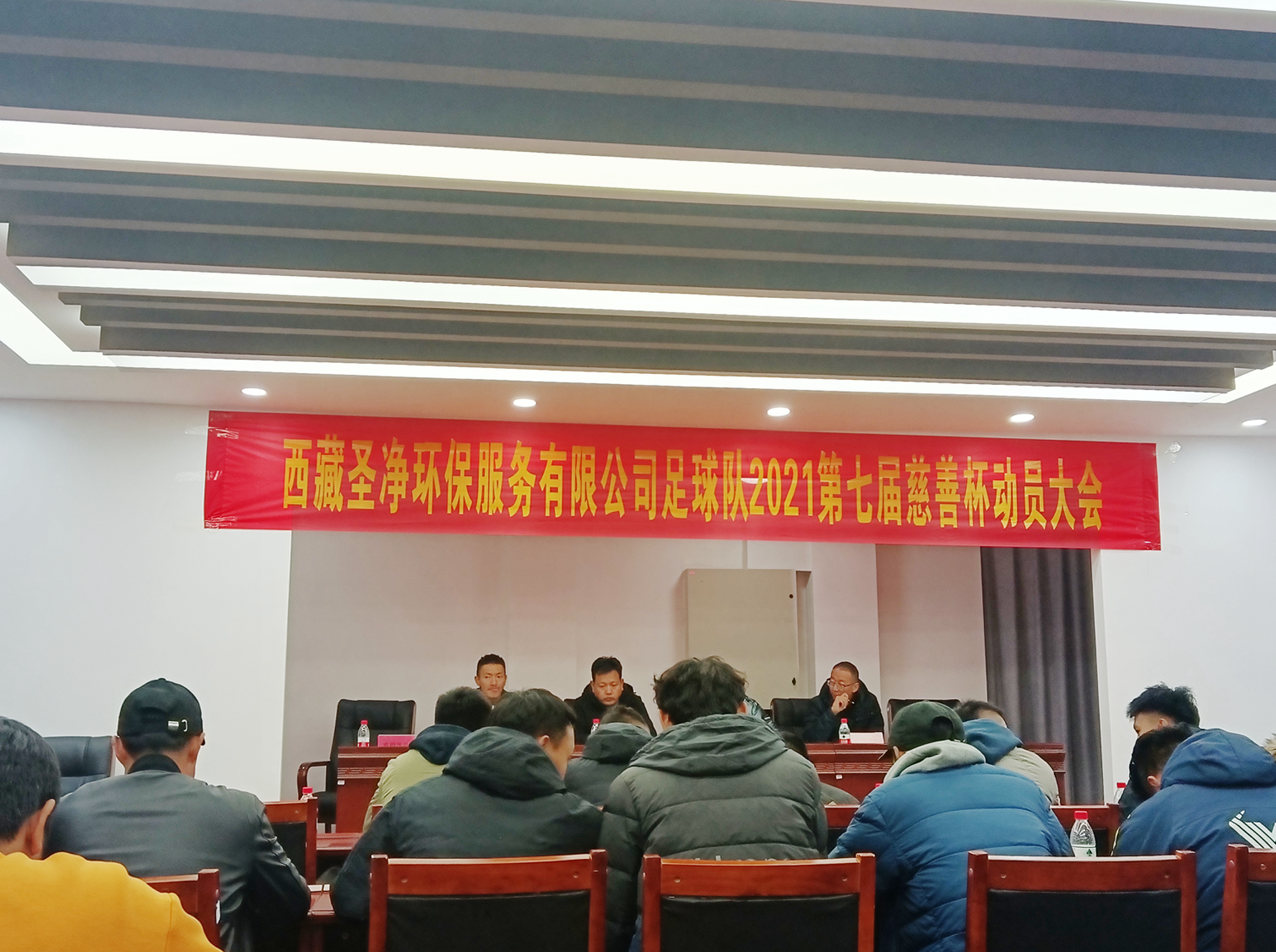 為了迎戰(zhàn)拉薩市第七屆慈善杯足球聯(lián)賽,全方位做好賽前準備,鼓舞球員們的士氣,增強球員們的信心,西藏圣凈環(huán)保服務(wù)有限公司于2021年11月19日19:30分在藏?zé)嶂新穱身椖抗芾碛邢薰舅臉菚h室召開賽前動員大會。出席本次會議的有總經(jīng)理達瓦、副總經(jīng)理兼商務(wù)部經(jīng)理次仁、副總經(jīng)理尼瑪次仁和球隊教練,列席人員有所有球隊成員和公司代表員工。會議由副總經(jīng)理尼瑪次仁主持,首先副總經(jīng)理尼瑪次仁對球隊成立至今公司各項支持及付出做了總結(jié)講話。然后,球隊教練講解了一些參加比賽時安全隱患的措施。球隊成員代表承諾努力比賽,爭取取得名次,用最佳成績向圣凈環(huán)保公司報喜。隨后,總經(jīng)理達瓦號召球隊所有成員秉承友誼第一、比賽第二的原則,服從裁判,尊重對手。最后,公司副總經(jīng)理兼商務(wù)部經(jīng)理次仁作了動員講話,鼓勵球員銳意進取,奮發(fā)圖強,再創(chuàng)佳績。大會歷時一個多小時,在球員相商戰(zhàn)術(shù)和相互鼓勵中拉下了序幕。通過此次動員大會,所有參賽成員一定會更加重視、全身心的投入到本次比賽中。我們也堅信,在即將到來的慈善杯足球賽上,足球隊成員們會團結(jié)一致,共同拼搏,取得優(yōu)異的成績,再創(chuàng)輝煌,為我公司爭取更多的榮譽,讓“圣凈環(huán)保”的名字響亮在足球場上。